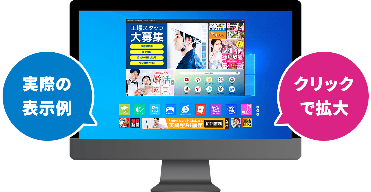 ネットカフェPCの起動時に表示されるスタートアップツール「デスクトップランチャー」という広告媒体です。